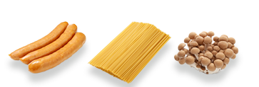 - ③お水、調味料、具材(石づきを取り小房にわけたしめじと切ったソーセージ)を入れる。
